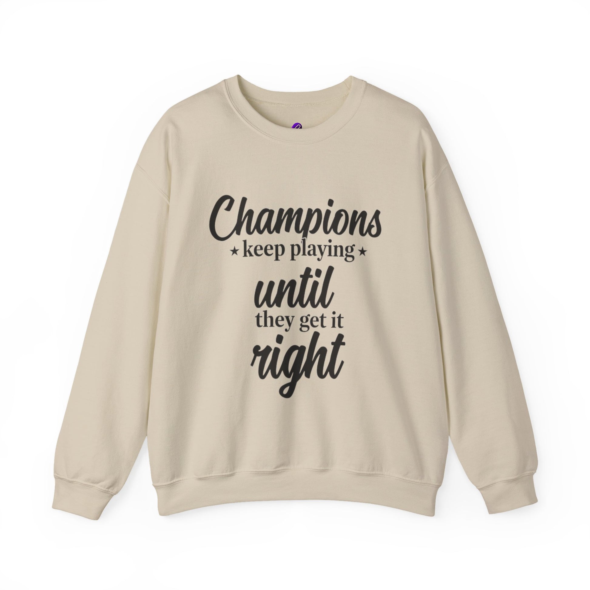 Crewneck Sweatshirt - "Champions keep playing until they get it right" Inspirational Sports Quote