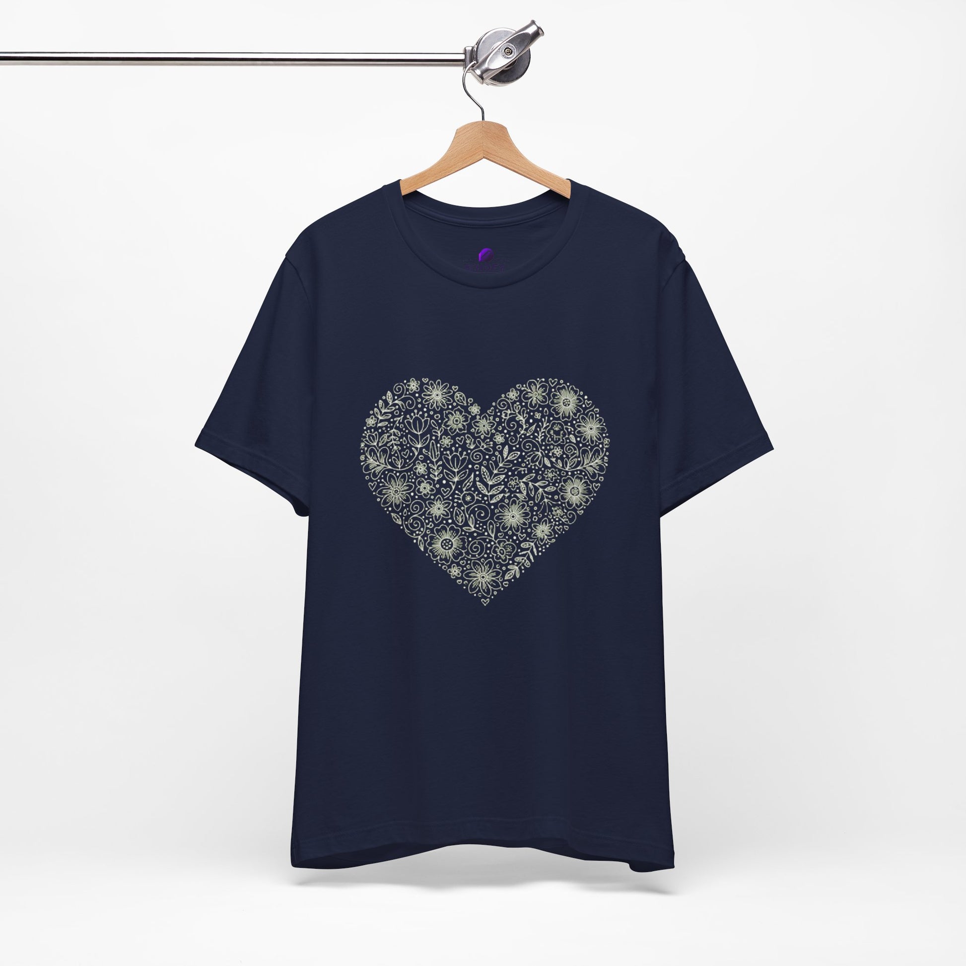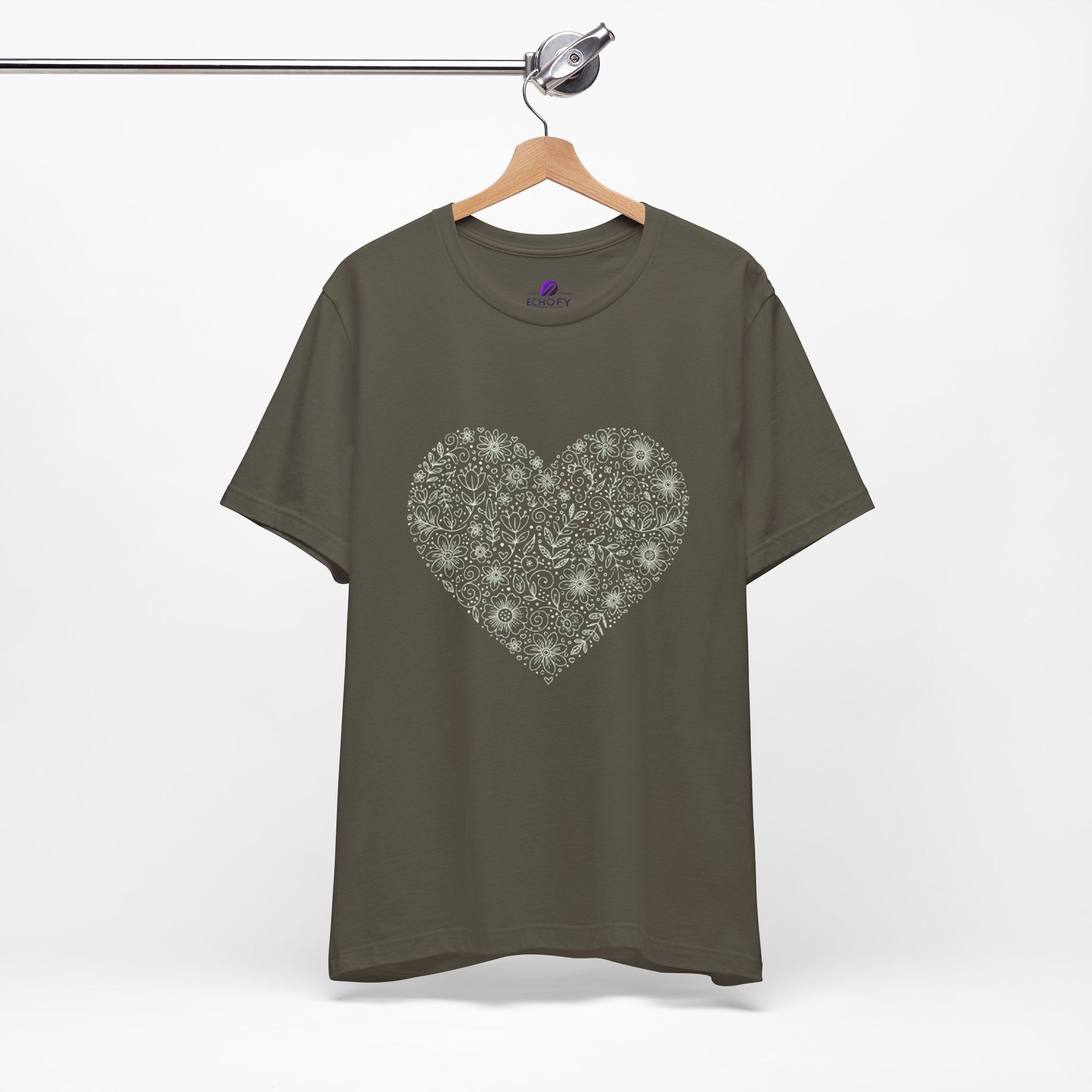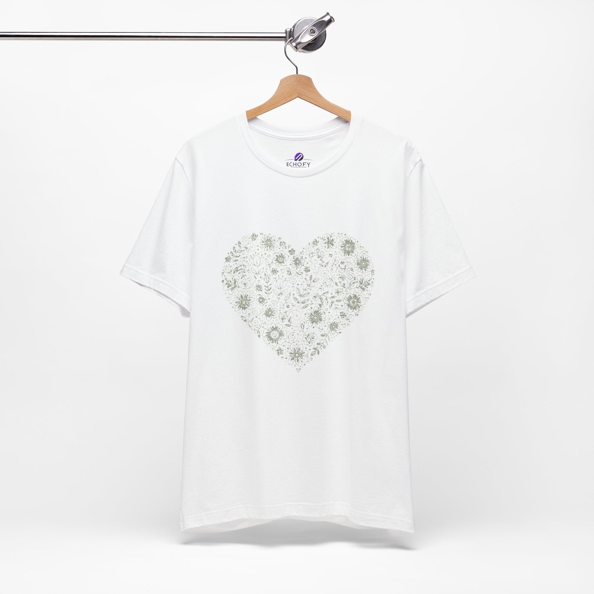 Floral Heart Tee — Delicate Botanical Heart Short Sleeve Shirt