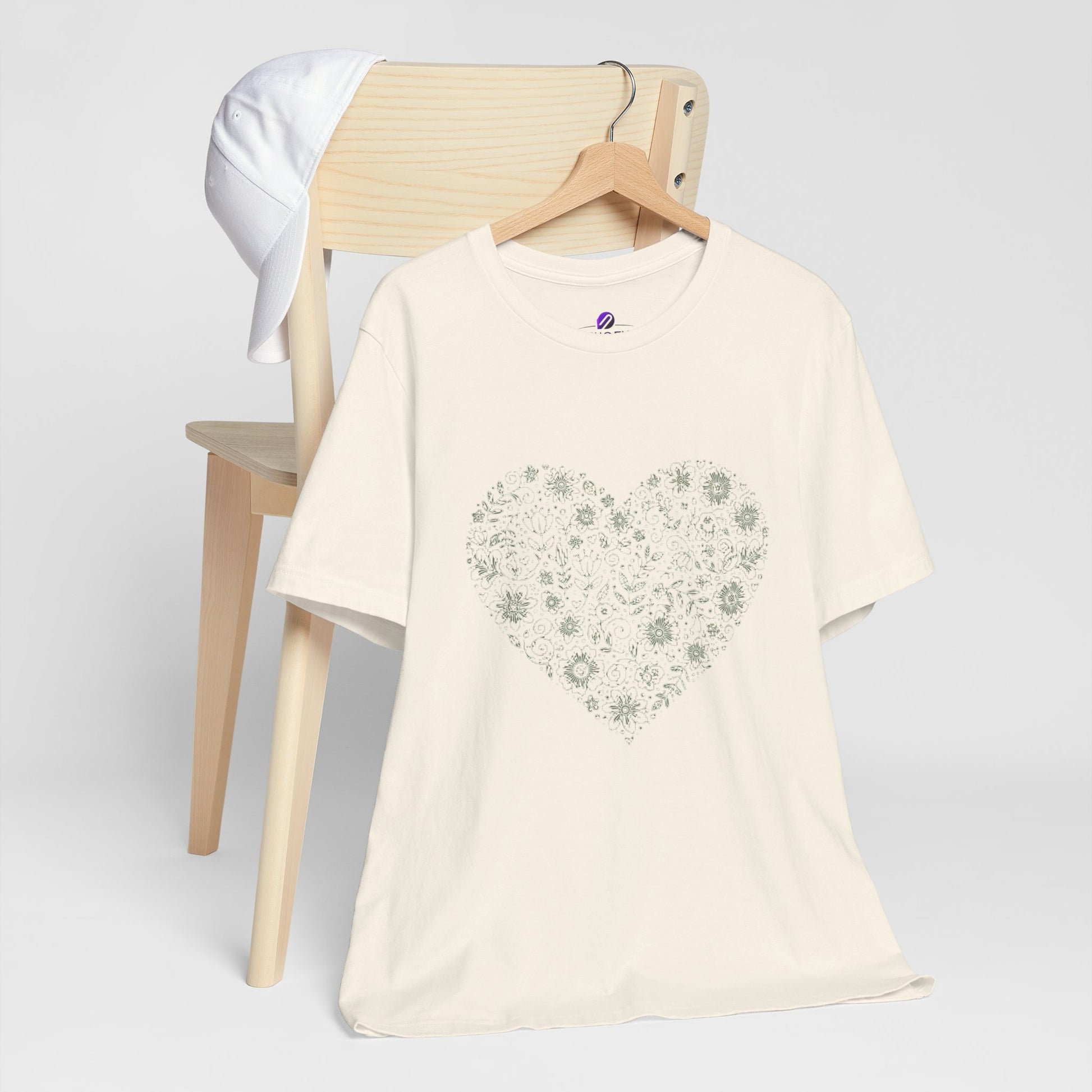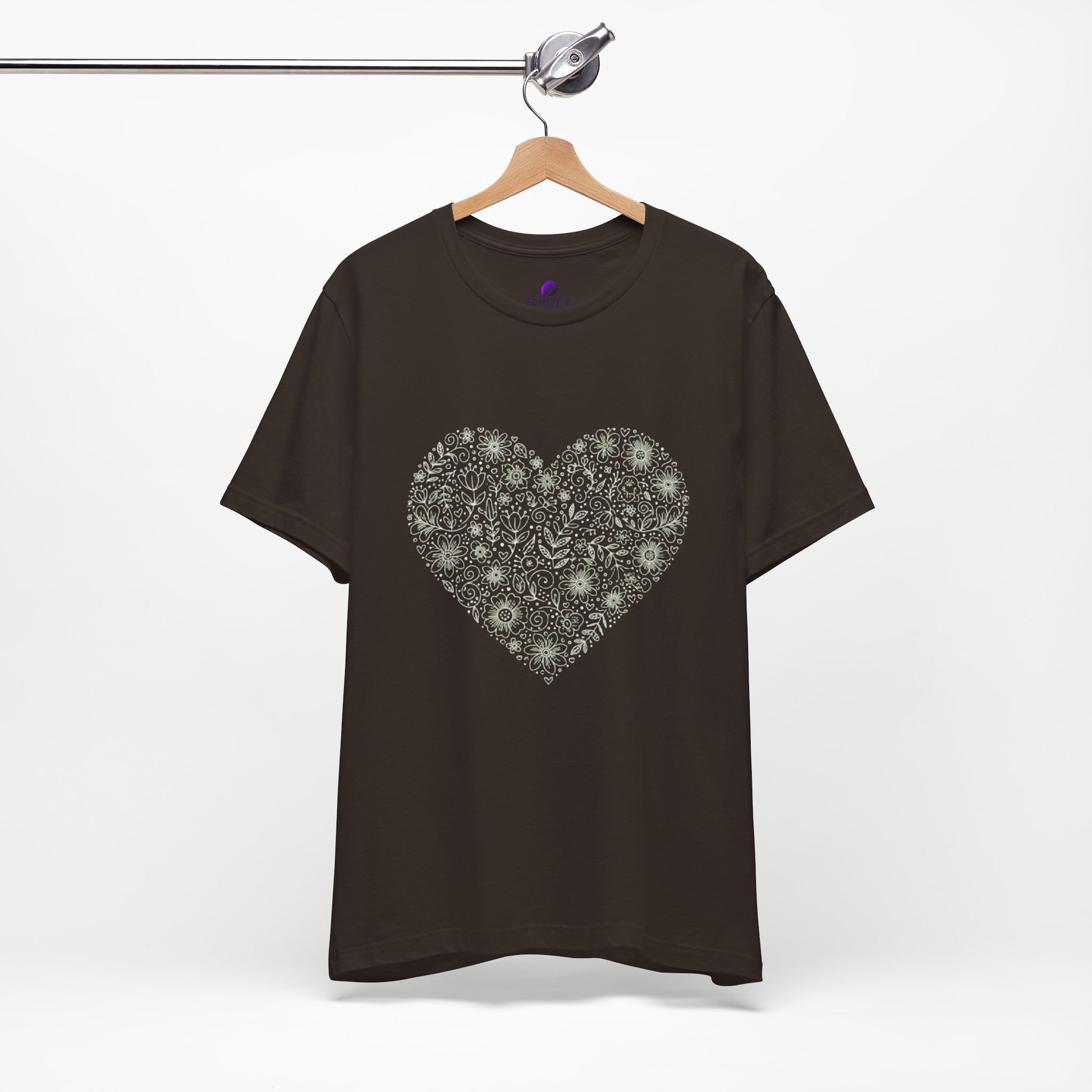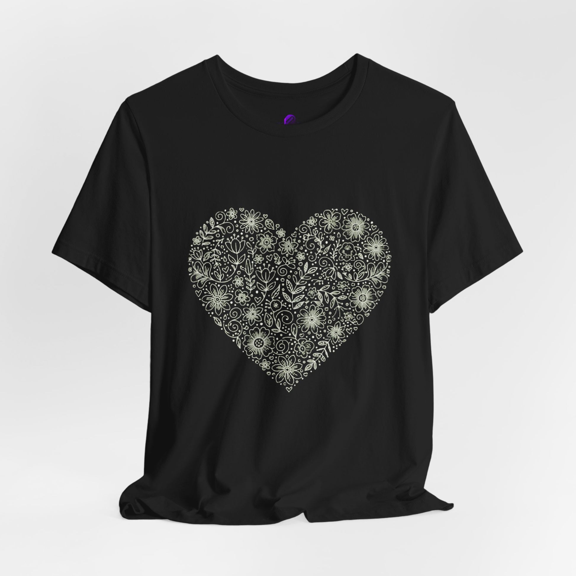 Floral Heart Tee — Delicate Botanical Heart Short Sleeve Shirt