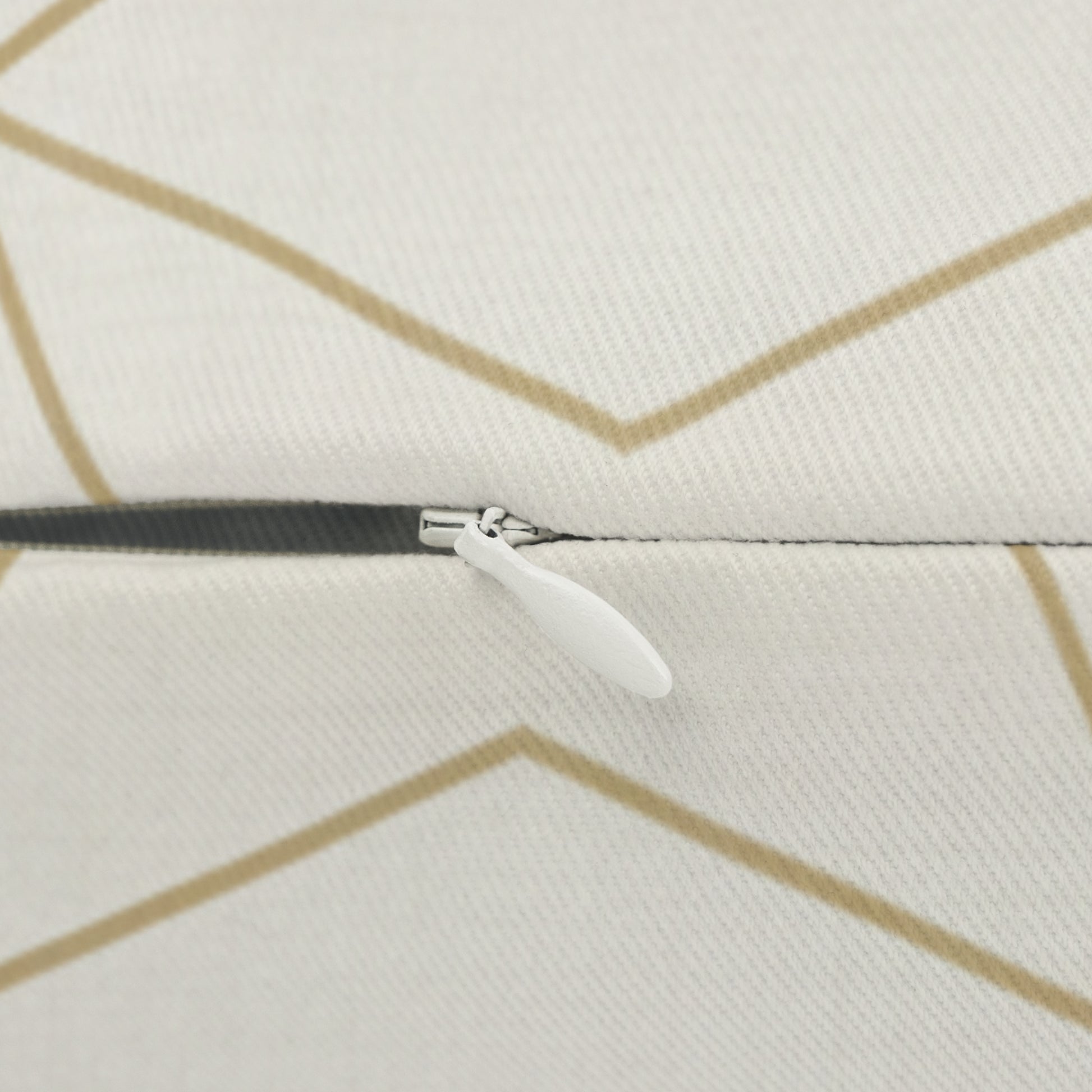Wrap your sofa or bed in quiet elegance with this lumbar pillow that reads like modern minimalism. A soft cream background hosts a delicate geometric lattice in warm gold tones — subtle, structured, and soothing. The rectangular shape supports lounging and posture without overpowering a room. It slips into a living space that favors clean lines, neutral palettes, and layered textures. Place it on a mid-century armchair, a linen sofa, or a calming guest bed to add a gentle shimmer and a composed, collected mood.