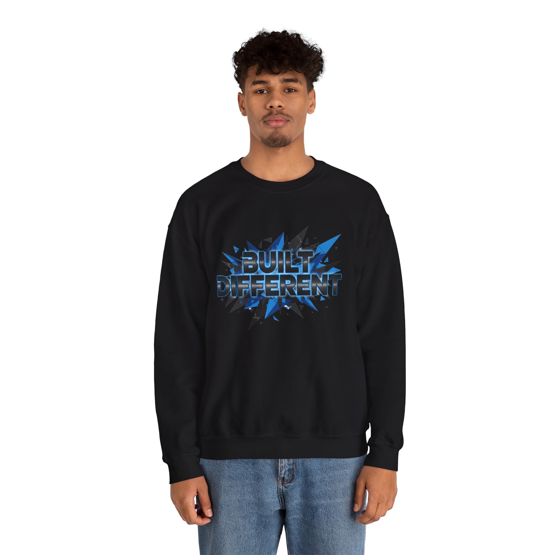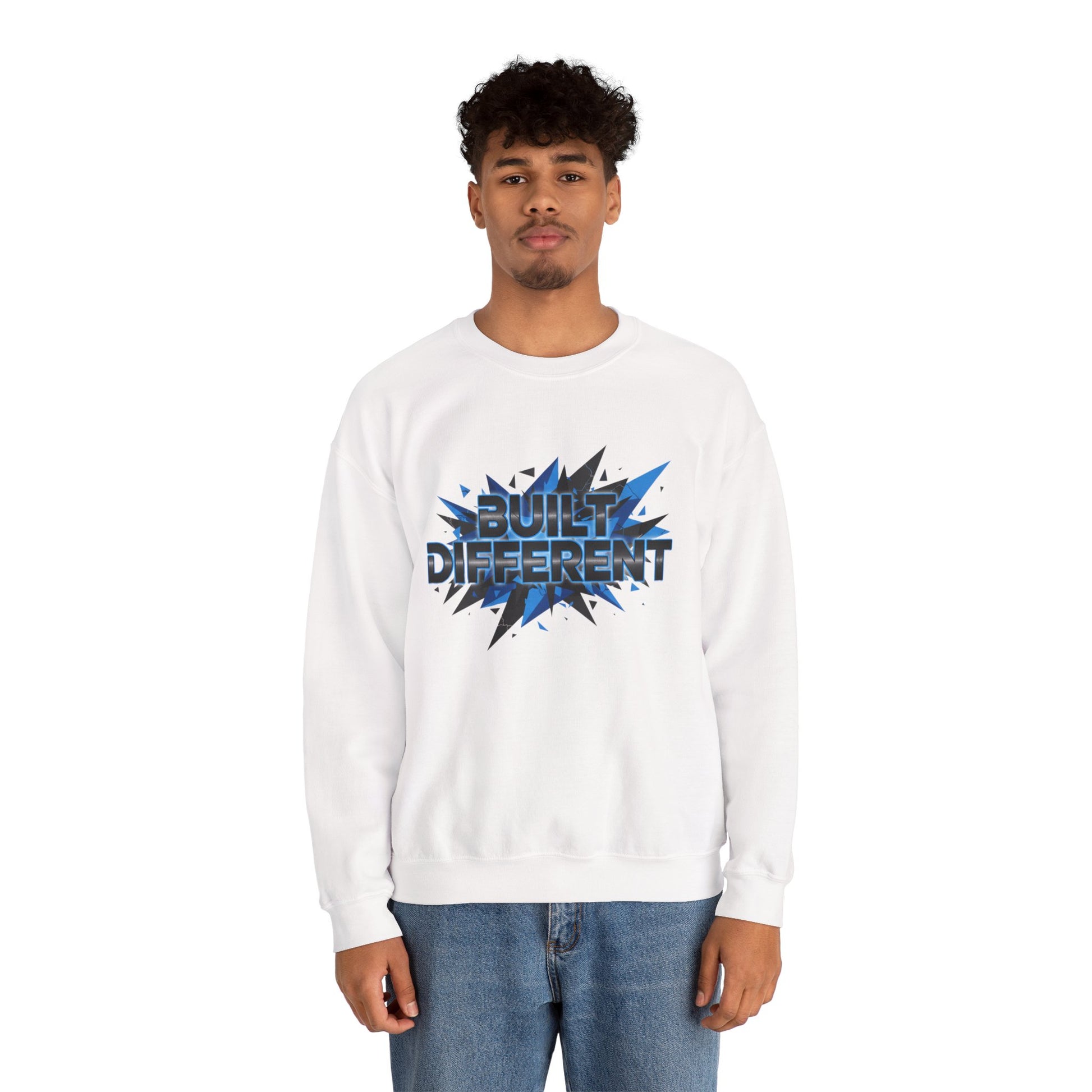 Sweatshirt — "Built Different" Graphic Crewneck (Bold Blue Burst)
